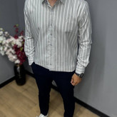 پیراهن مردانه مکوئین مدل راه راه جنس هوایی نازک