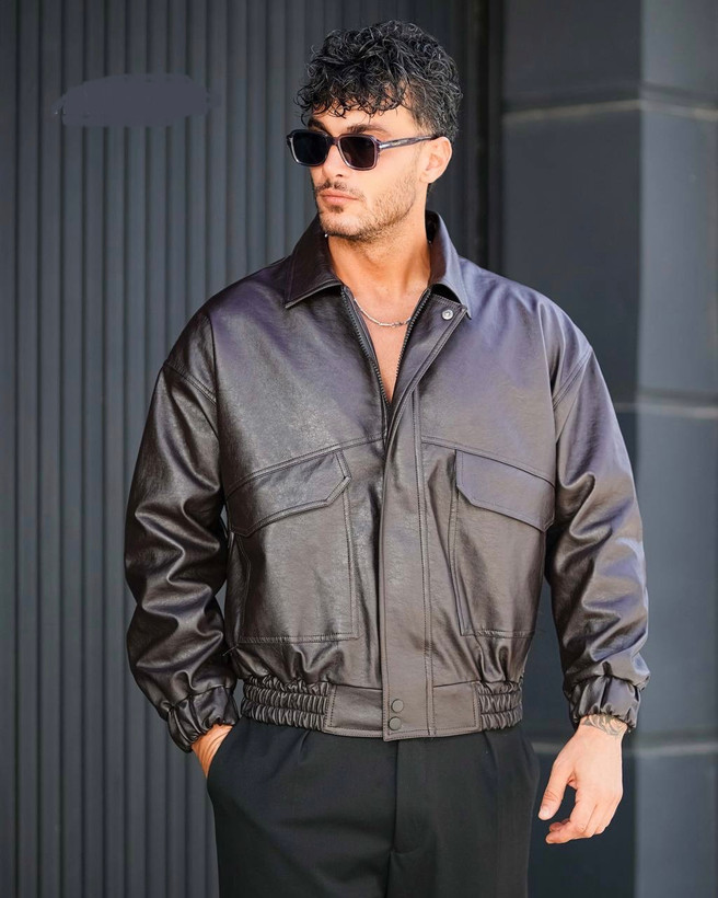 کاپشن چرم مردانه بایکر مدل کمری خاص و وارداتی